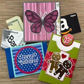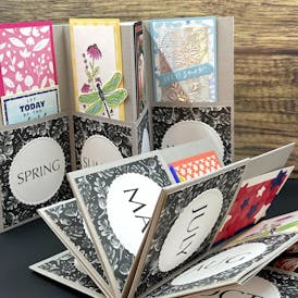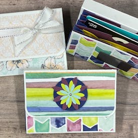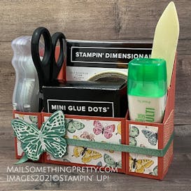This compact, perfectly sized and customized organizer holds: a tape runner, scissors, package of dimensionals, mini glue dots, tear & tape, a bone folder and glue. Perfect for your work space or make them to give as gifts. $30. $